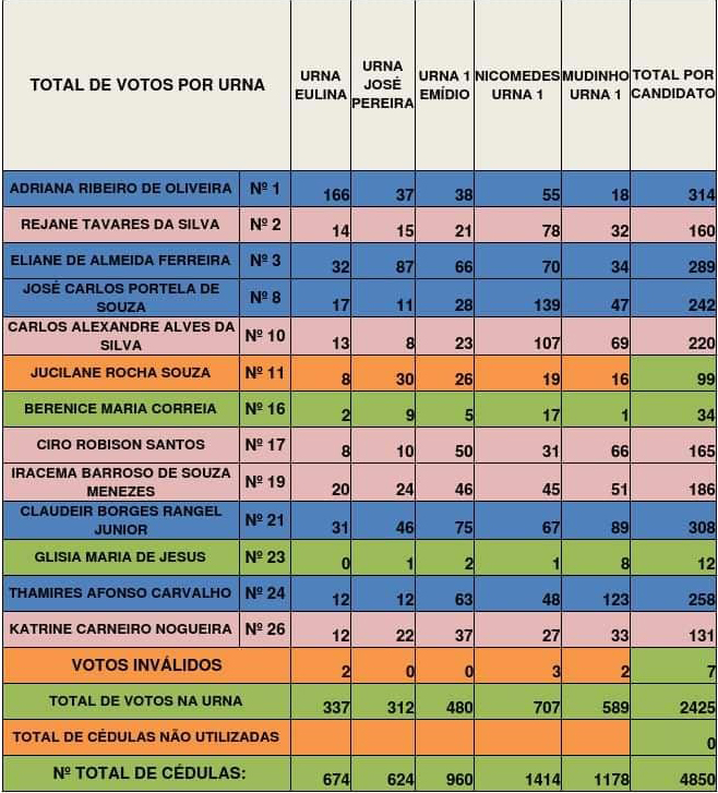 Treze candidatos concorreram pelas cinco vagas, e os conselheiros que mais votos receberam, foram: Adriana Ribeiro (314 votos), Claudeir Júnior (308 votos), Eliane de Almeida (289 votos), Thamiris Afonso (258 votos) e José Carlos Portela (242 votos).
