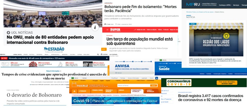 O vírus tem deixado parte da população do mundo com medo da doença e das incertezas econômicas, no entanto, no Brasil ainda é pior, além dos medos relatados, a grande maioria da população teme declarações que o presidente possa vir a fazer, sabendo que esses devaneios irresponsáveis, egoístas e até genocidas, acabam influenciando parcela da população. É recorrente que o presidente nessas declarações ignora a ciência, dados estatísticos, estudos de pesquisadores e autoridades internacionais que abordam a pandemia.