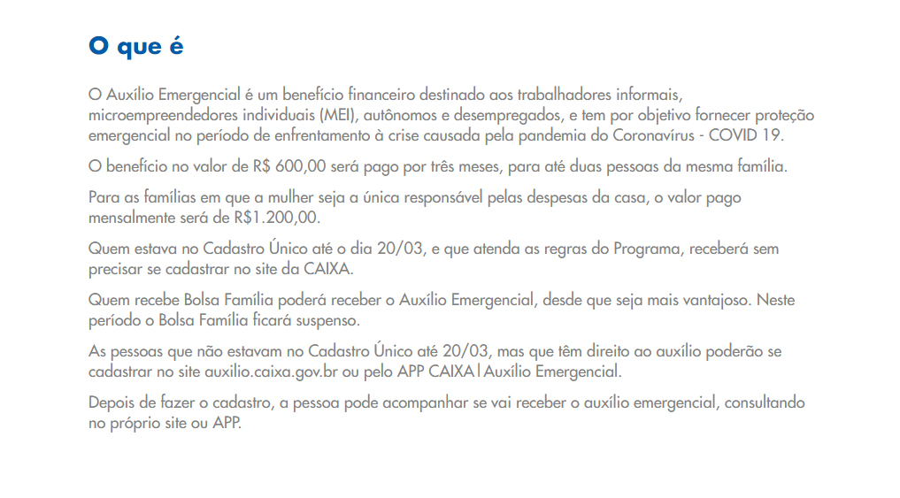 A página da web e os aplicativos estão disponíveis a partir de hoje (07/04), para que trabalhadores façam as solicitações para o auxílio emergencial do Governo Federal, devido ao período de isolamento imposto para conter o avanço do Coronavírus (Covid-19).