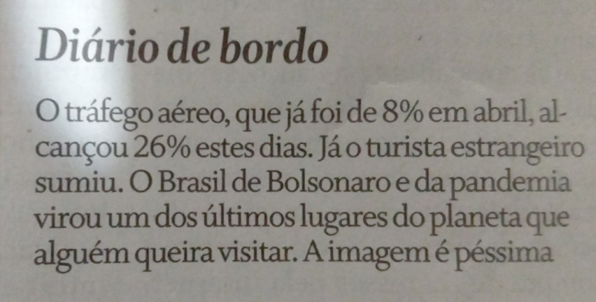 Sem recursos, o turismo terá que se reinventar no pós-pandemia. Turismo internacional não quer saber do Brasil. Alguns países fazem campanha para que o Brasil não seja visitado, como os Estados Unidos, por exemplo, leia aqui.