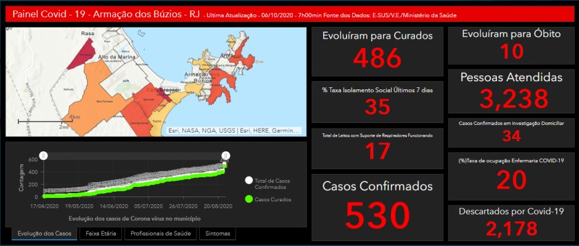 De acordo com dados divulgados pela prefeitura de Búzios, o Município atingiu a marca de 530 casos no total.