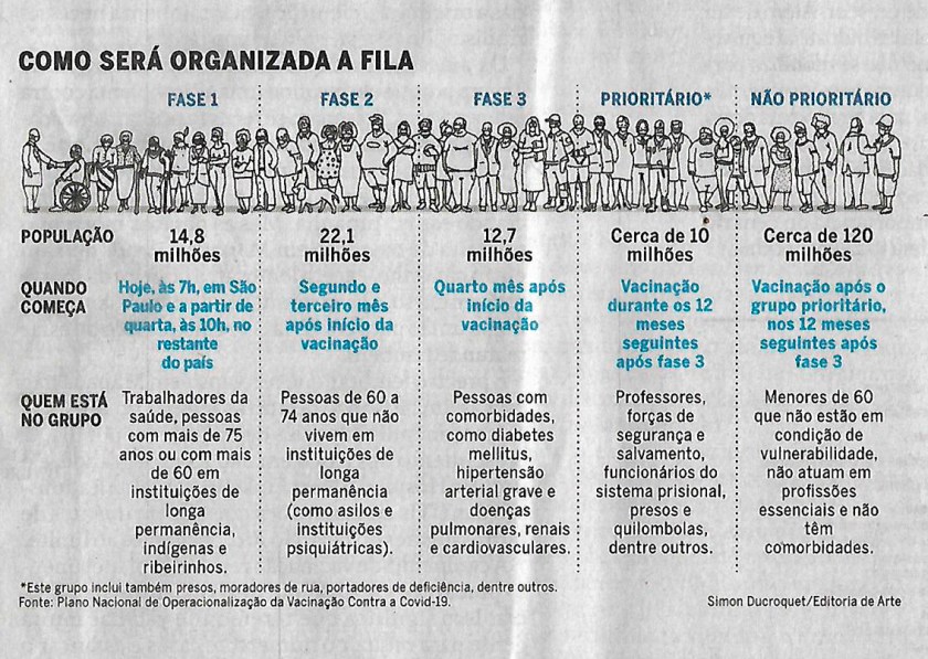 Confira a seguir a tabela de distribuição das vacinas no estado do Rio de Janeiro e a arte publicada na edição do impresso O Globo, no dia 18 de janeiro (arte de capa).