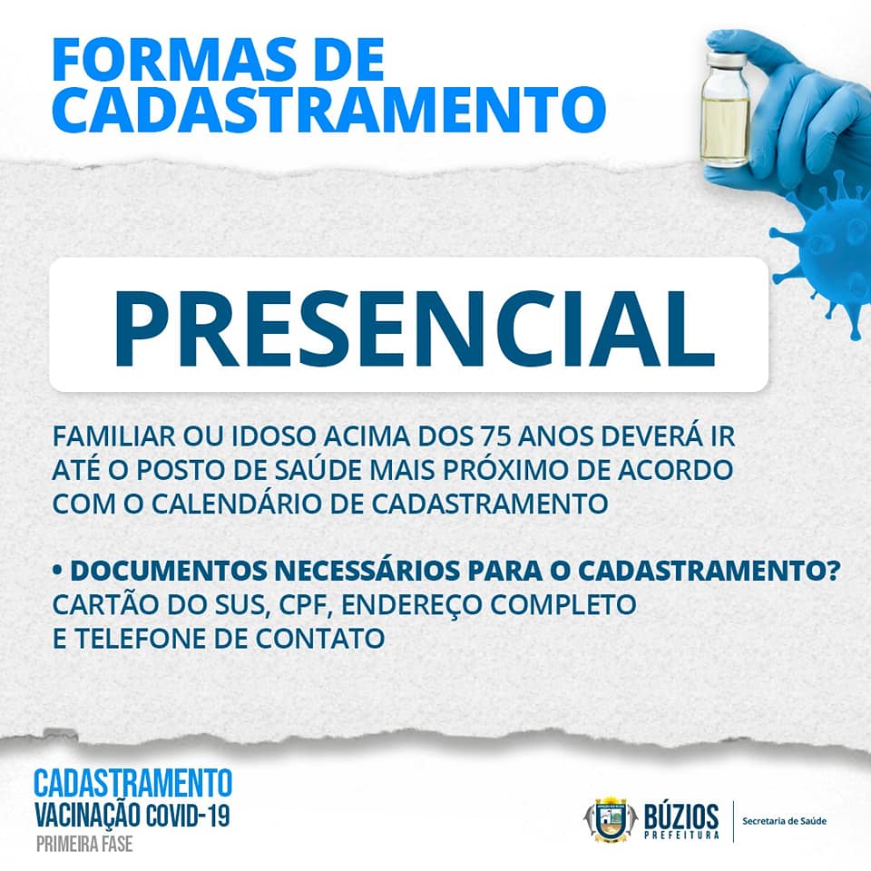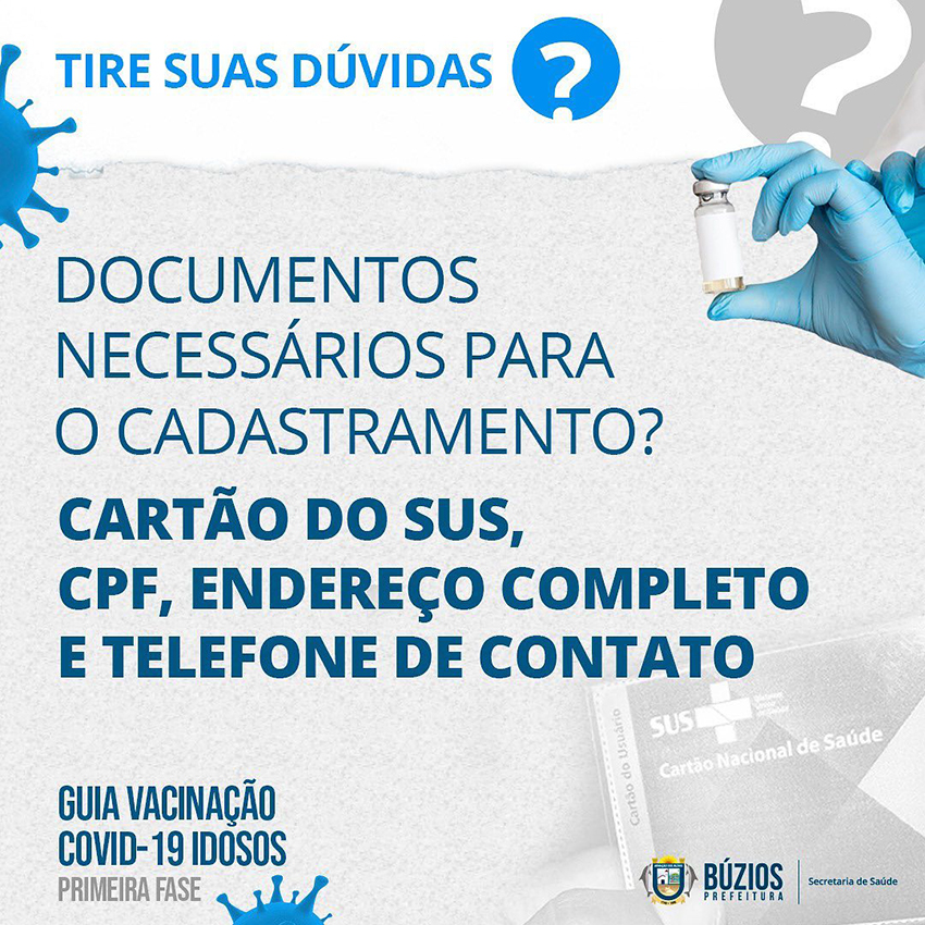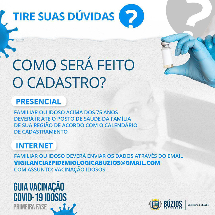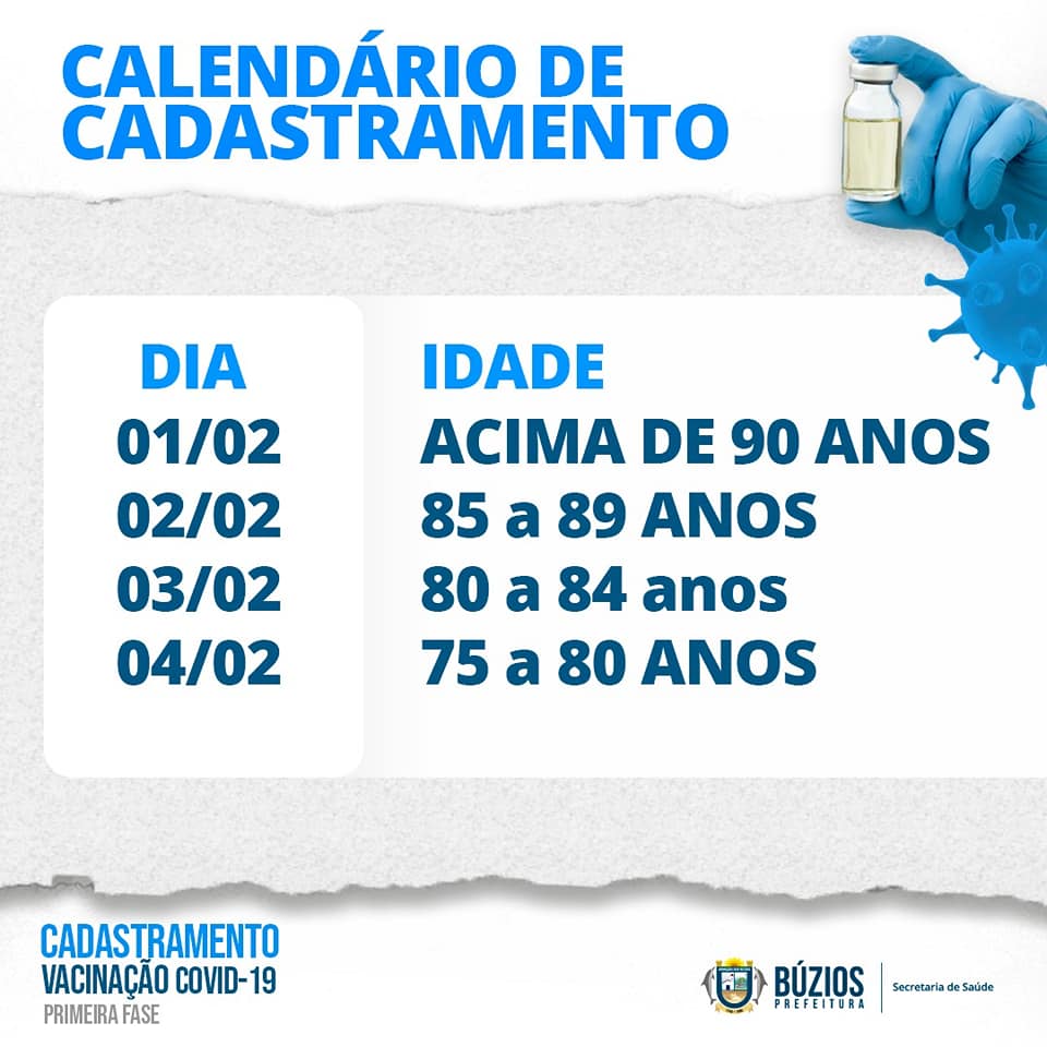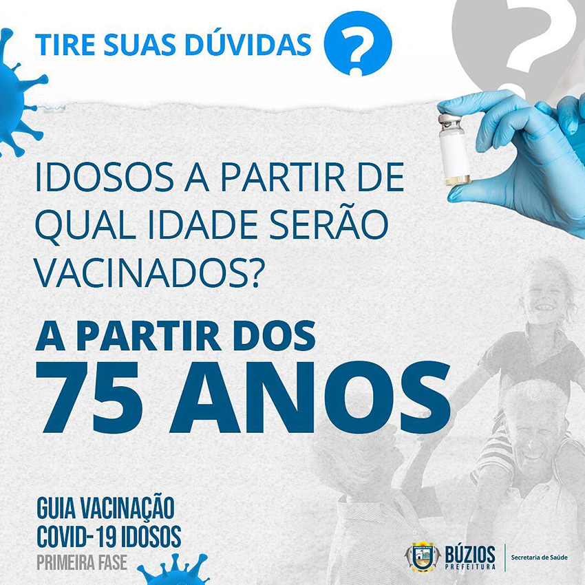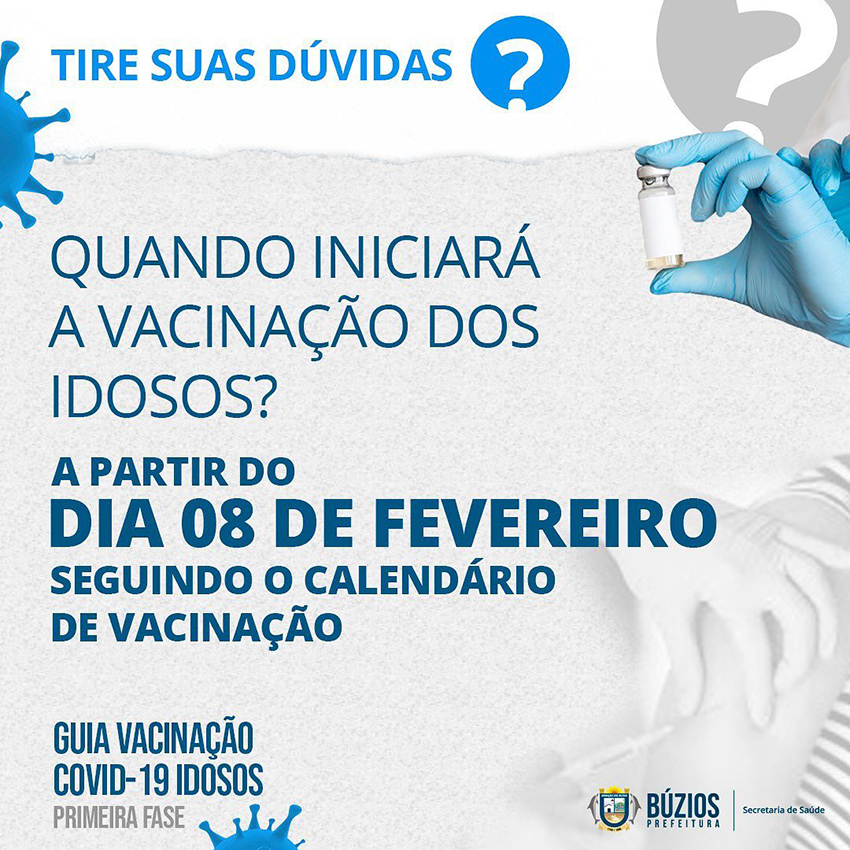 Prefeitura divulga calendário para a primeira fase da campanha de vacinação em Búzios. Idosos com 75 anos ou mais serão os próximos vacinados.
