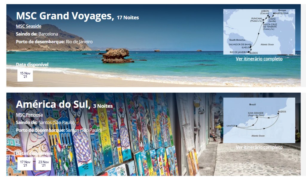 As principais empresas de cruzeiros também informam que as rotas estão ‘sujeitas a alterações’, também devido à pandemia. Além é claro, de novos protocolos sanitários pontuais.