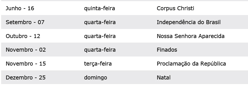 Além do feriado, de Corpus Christi, no dia 16 de junho, o dia dos namorados, 12 de junho, também pode atrair turistas para a cidade.