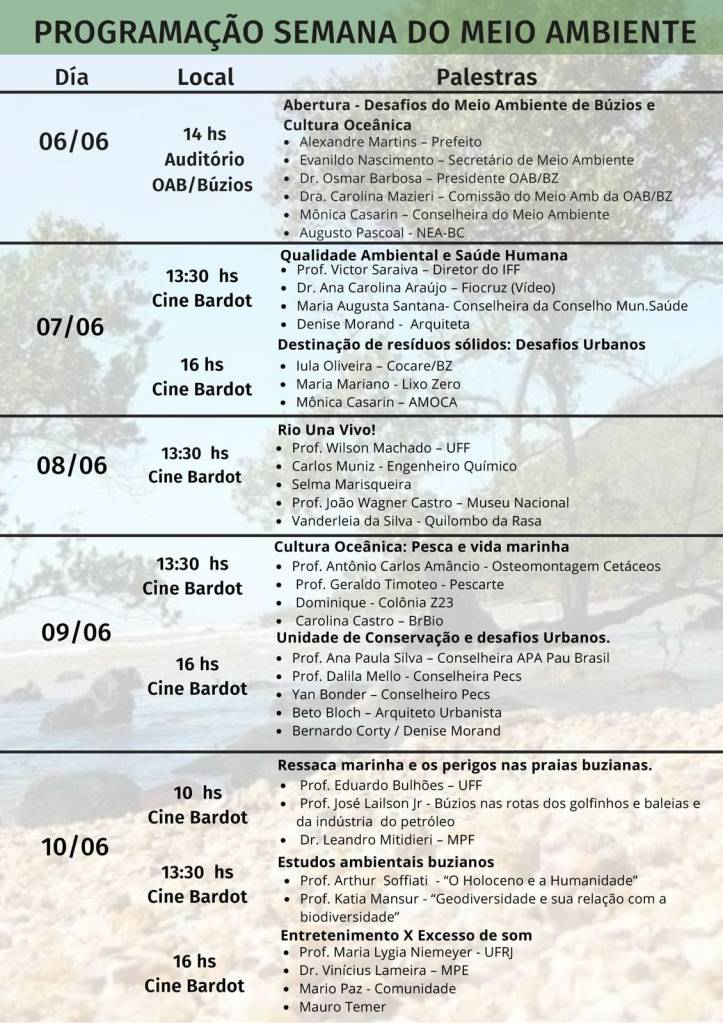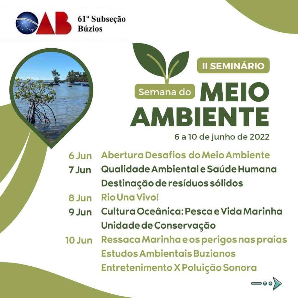 A OAB Búzios 61ª Subseção tem uma programação especial para a semana do Meio Ambiente.
