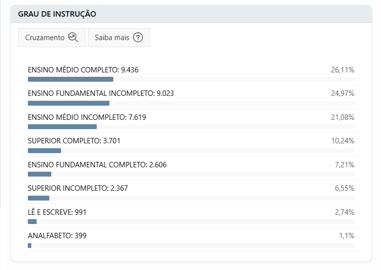 Em relação à escolaridade, eleitores com ensino médio completo e fundamental incompleto são a maioria, somando mais da metade de todo eleitorado buziano.