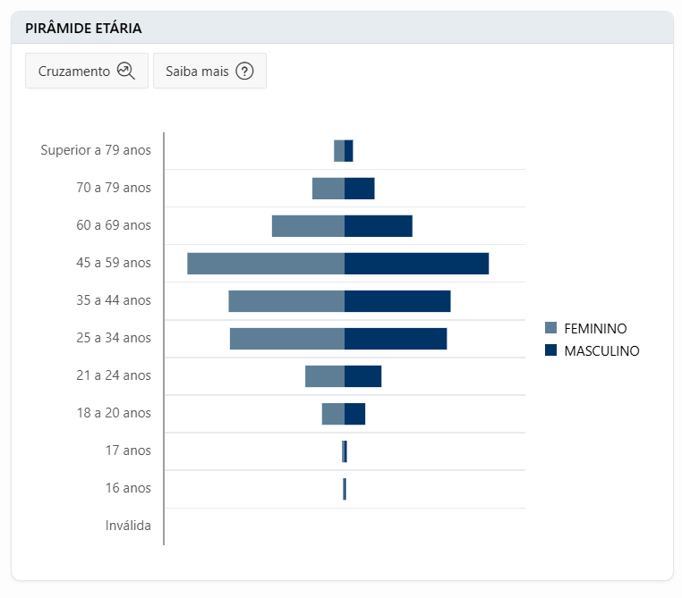 Eleitores com idade compreendida entre 45 e 59 anos são a maioria.