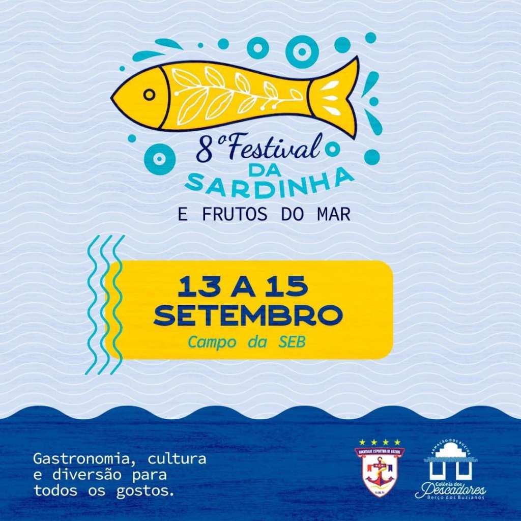 O delicioso festival, já tradicional da cidade, acontece nos dias 13, 14 e 15 de setembro, às 18h, com pratos variados, tendo a sardinha como atração principal, pratos com frutos do mar e sobremesas. Serão mais de 60 pratos diferentes, de acordo com os organizadores.