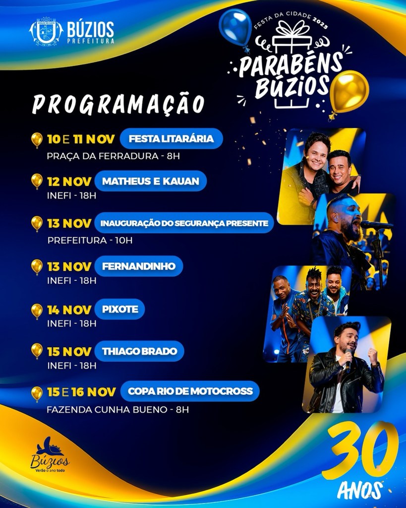 12 de novembro, aniversário de Búzios. Confira a programação.